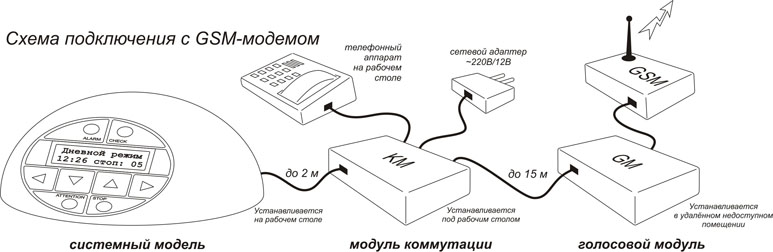 В случае проблем с аналоговыми линиями связи передачу голосовых тревожных сообщений можно осуществлять с помощью каналов GSM связи. Для этого можно использовать выпускающиеся недорогие GSM -модемы с внешним аналоговым выходом.